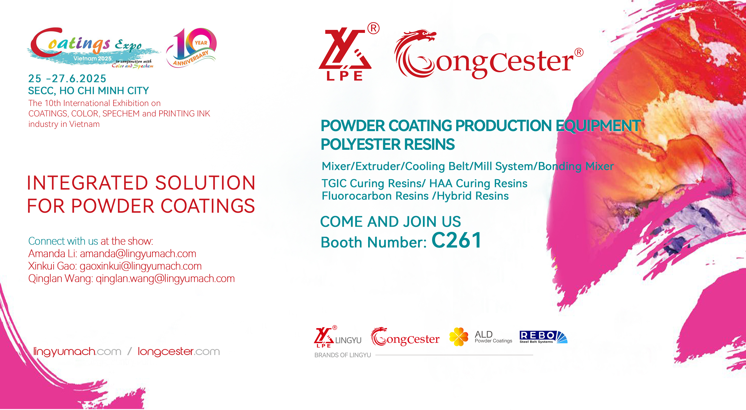 作為中國粉末涂料設備領域的代表性企業,凌宇機械也將亮相本屆展會,展位號Booth Number:C261。凌宇專注于粉末涂料生產線的研發與制造,產品以高效節能、穩定性和自動化程度高著稱。凌宇自進入東南亞市場以來,已為越南、泰國、印尼等國的多家涂料企業提供設備解決方案。此次參展,企業旨在深化本地化服務,通過現場技術交流與客戶直接溝通需求,進一步拓展在越南市場的合作網絡。